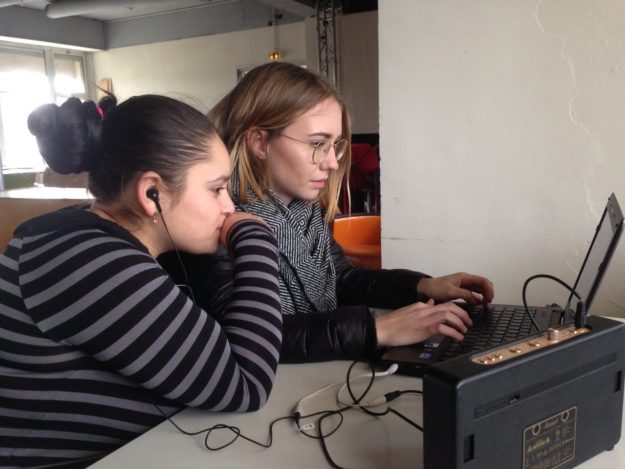 Chacun leur tour, les jeunes nous ont raconté leur journée de la veille. A partir de ce récit, nous avons sélectionné des mots précis reliés à des anecdotes. Après avoir enregistré celles-ci, ils les ont illustrées de manière désynchronisée en les mimant.